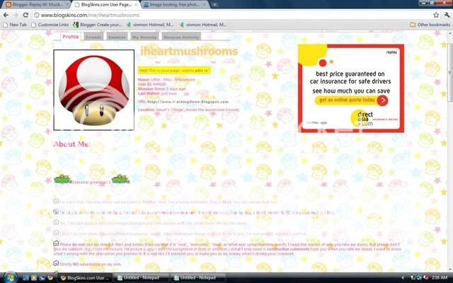 Thousands sorry if I disappoint you. I'm not any good skinner. Well, that's all for now. Will be continuing making skin. (: Have a nice sleep, nice dream and a goodnight. I'm having insomnia right now. Can't concentrate on sleeping. All on my mind was, " Make a good blogskin, make a good blogskin!! ". Anyways, I've edited my blogskins profile. Kekeke, thanks to chocoxbaby. Your such a good skinner.