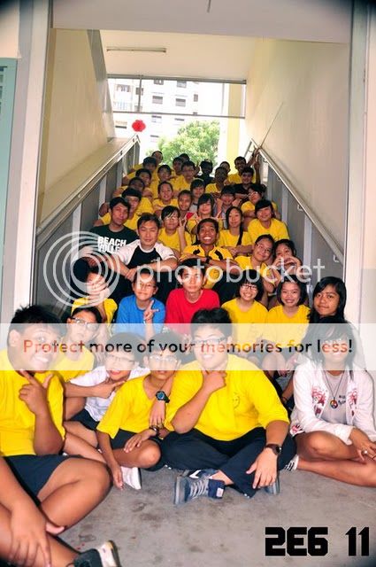 Omg, I hope I'm not that awful in the pic. But it appears to be nice in it. Well, don't try to find me inside. Oh yeah, the bunch of boys at the back can't be really seen but I don't care. As long as everybody is in sight of this pic, it's damnnnnn cool. 2e6 rocks. And yeah everybody's wearing yellow camp shirt, except for Kenric, Syuhada, Syukrina, Angeline, Faris, Xinhui, Asfarina, Abhishek & Natasha. Ofc, the teachers, Mr Chai & Mr Salizam is wearing their own shirt. And our camp trainer, Instructor Alif ^^ Sho cool.